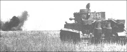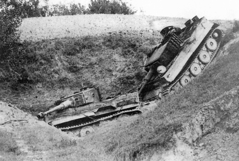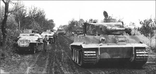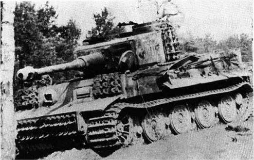 [동부전선에 급파된 티거의 모습 티거는 아직 완성되지 않은 전차였으나 히틀러의 고집으로 동부전선에 3량이 투입되어 격파되거나 노획되는 수모를 당하게 된다]