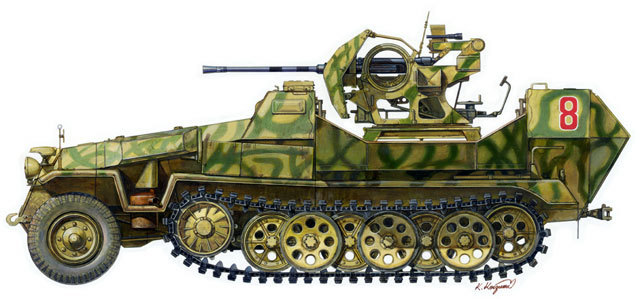 2.3.5. Sd.Kfz 251/1720mm 기관포를 장착한 버전이다. 측면 장갑판을 약간 둥글게 하거나 제거하여 전방위 대공 사격이 가능한 버전도 존재한다. *벌지전투 때 총통척탄병여단,제116 기갑사단이 운용하기도 했다 2.3.6. Sd.Kfz 251/20