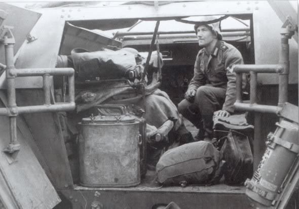 [하노마그 장갑차의 문은 차체 뒤쪽에 있으며 양쪽으로 열린다. 오픈탑 방식이므로 상부가 개방되어 있어 상부 공격에 취약하고, 가끔 수류탄이 상부로 들어오는 연출도 나온다. 후기형에는 상부 2차대전 버젼 기계화 보병인 장갑척탄병들도 자주 애용했다.[3] 다만 생산량은 충분한 수준이 아니라서 대부분의 독일군은 이거 대신 트럭이나 마차를 타고 진격했다] [내부는 완전무장은 병사 8명과 조종사 2명 그리고 기관총 사수 1명을 탑승시킬수 있을 정도였다] [전쟁초에는 경사장갑으로 날카롭고 강력한 인상을 주는 외형으로 제작되었으나, 애초에 장갑이 너무 얇아서 총탄 정도만 막아낼 수 있는 수준. 후기형은 생산성을 높이기 위해 경사각은 그대로이지만 외형이 단순하게 변경되었다.]