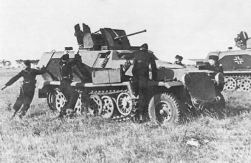[ Sd.Kfz. 251 반궤도 장갑차는 독일의 중장비 개발회사인 하노마크사가 제작한 반궤도 장갑차로 하노마크라는 이름은 별칭이며, 공식적인 형식번호는 Sd.Kfz 251 Mittlerer Schützenpanzerwagen(251형 중형 보병장갑차)이다.] [ Sd.Kfz. 251 반궤도 장갑차는 독특하게 앞쪽은 휠방식을 후방은 궤도를 사용하는 반궤도 방식으로 설계되었는데 원래는 완전히 무한궤도만 쓰려 했지만 방향 전환을 쉽게 하기 위해 이런 방식을 채택했다. 당시 무한궤도는 방향 전환을 위해 한쪽 궤도를 제동하는 방식이 많이 사용되었고, 이러한 방식은 낮은 기술과 저비용의 장점이 있지만 기동성이 낮은 문제가 있었다. 아예 기동륜 자체가 따로 가동하여 제자리 선회가 가능한 방식은 높은 기술과 고비용의 단점이 있지만 기동성이 높다. 전자의 경우 대부분의 전차들이 사용하는 방식이었고 후자는 티거 등 기동성이 우수하기로 소문난 전차들이 사용하는 방식이다. 그래서 저비용으로 고기동 궤도를 붙여보자는 아이디어로 나온것이 하프트랙이다. ] [Sd.Kfz. 251 반궤도 장갑차는 독특한 외형과 우수한 성능으로 독일군이 가는 어느전선에나 참가하였는데 이로인해 독일군을 대표하는 아이콘이 되기도 하였다. 하노마크 장갑차의 대량투입으로 독일군은 보병을 기계화시킴으로 전격적이라는 독특한 사상을 실현시킬수 있었다 어찌보면 현대 APC 의 원조격인 셈이다]