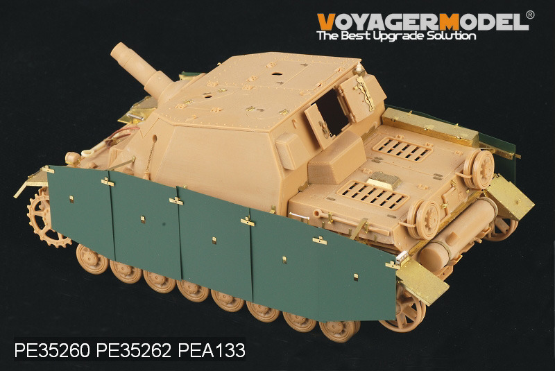 The Sturmpanzer IV's superstructure and StuH 43 gun was modified successively to fix flaws that based upon on frontline reports and comments. Therefore, the Sturmpanzer IV had many variations. Production began in May 1943 and continued until March 1945. More than two hundred Sturmpanzer IVs were built in different variations. The first variation rebuilt by Panzer IV ausf.D, ausf.E and ausf.F chassis. All of them are coming from frontlines for After battle repairing. The Sturnpanzer IV saw action in the Eastern Front and rashly joined battle ofKursk. On the Western Front, they were issuedItalytheatre and joined the German final offensive-Battle of Bulge.
