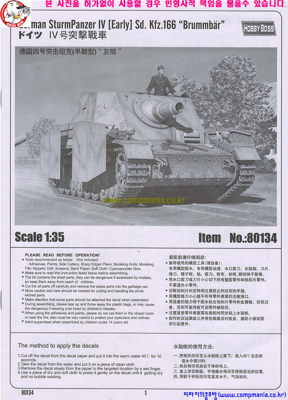 [[FREEVIEW]]German SturmPanzer IV early Sd. Kfz.166 Brummbar # 80134 [1/35th HOBBYBOSS MADE IN CHINA] PT4