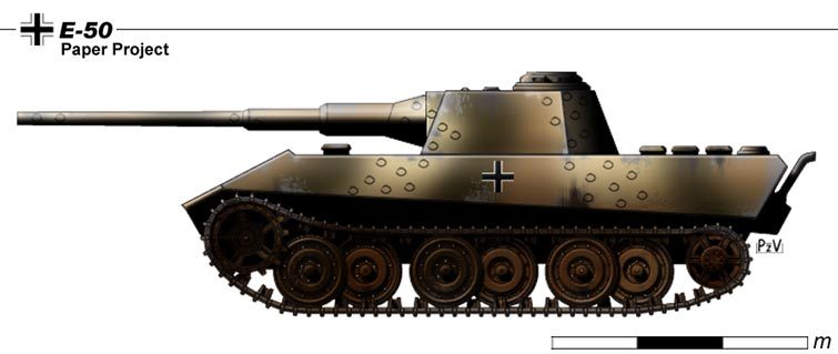 [E-50 은 본격적인 중전차 개발 프로젝트중 하나로 판터나 티이거2 를 대체하는 새로운 중전차 개발을 목표로 한 프로젝트였다]