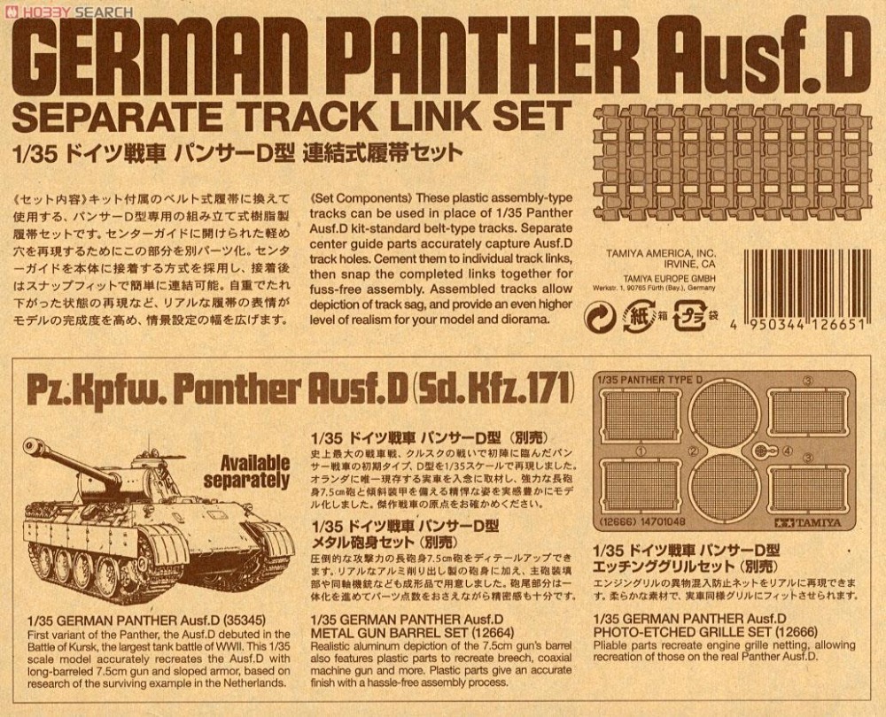[[FREEVIEW]]German Panther Ausf.D Separate Track Link Set # 12665 [1/35th TAMIYA MADE IN JAPAN]