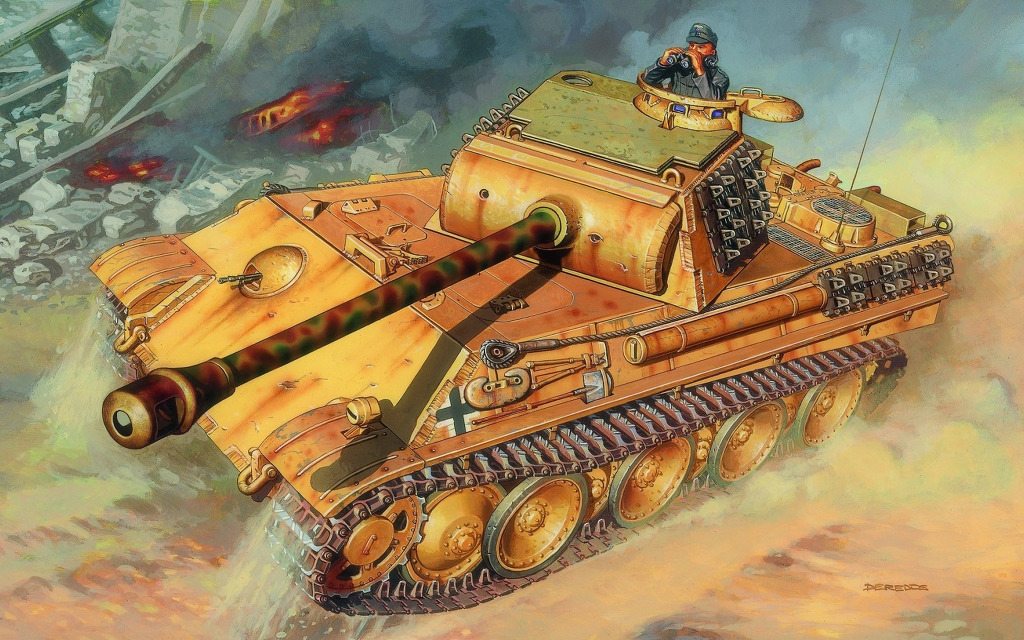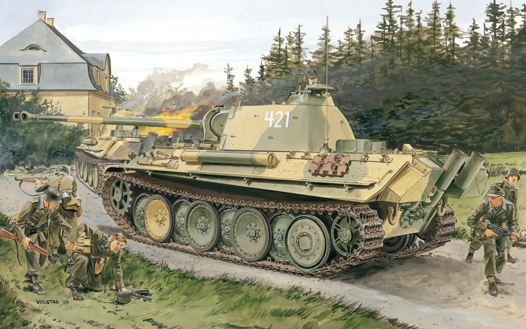 [판터전차는 초기양산형 D형이 기계적인 문제점으로 꽤 많은문제가 있었으나 이후 이를 개량형 A형이 등장하면서 독일군의 실질적인 주력전차로 활약하였으며 이후 후기형에 해당하는 G형이 등장하면서 성능상으로는 어느 연합군의 전차를 압도할 성능을 가진 전차였다]