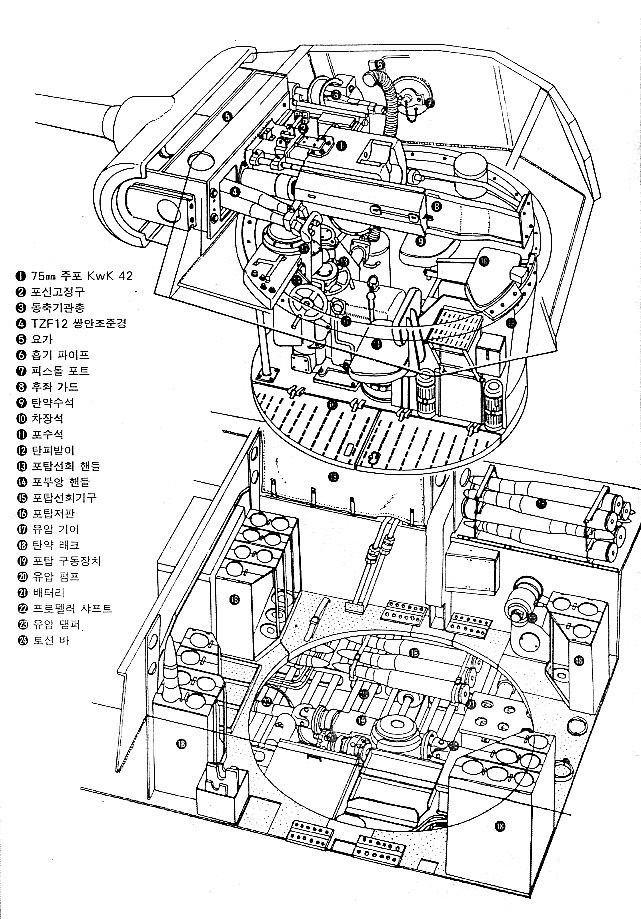 | 포탑회전방식 | 수동 및 유압겸용 |