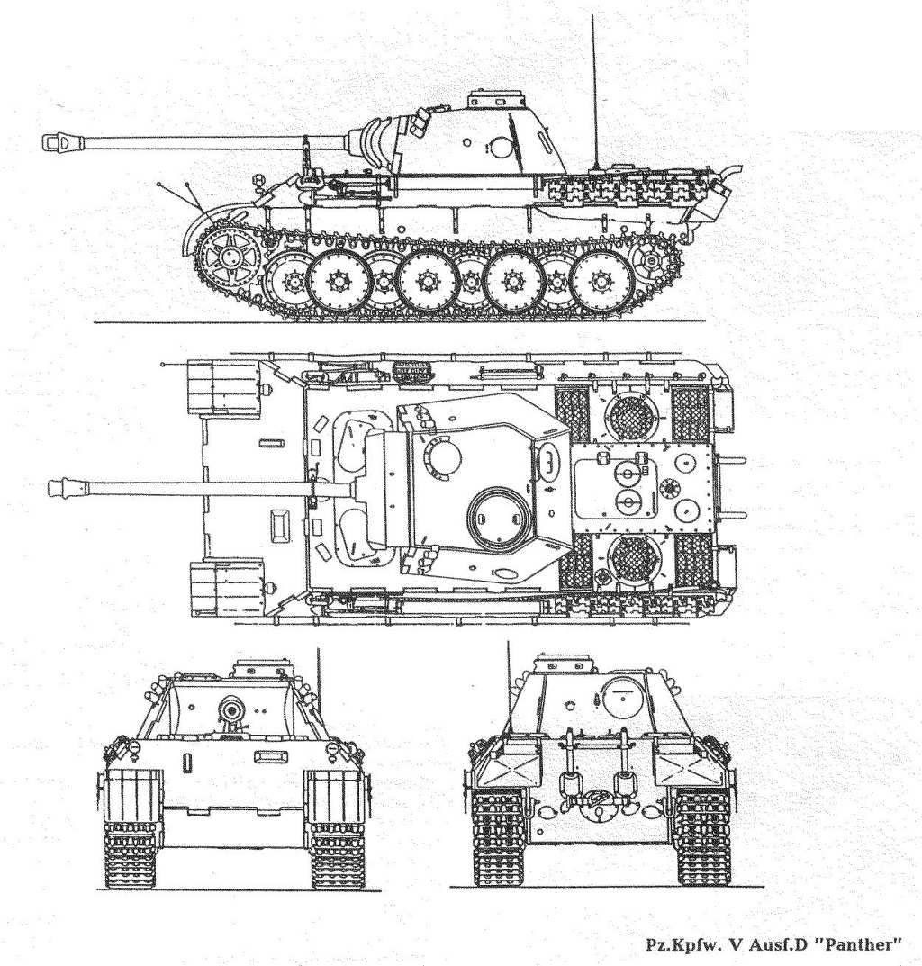[판터 초기형 모델인 D형의 모습 비록 초기모델은 기계적인 많은 문제점이 있었지만 독일군과 연합군을 통털어 가장 공수의 밸런스가 잘 맞은 현대의 MBT의 원형을 보여주는 멋진 설계를 가진 전차였다]