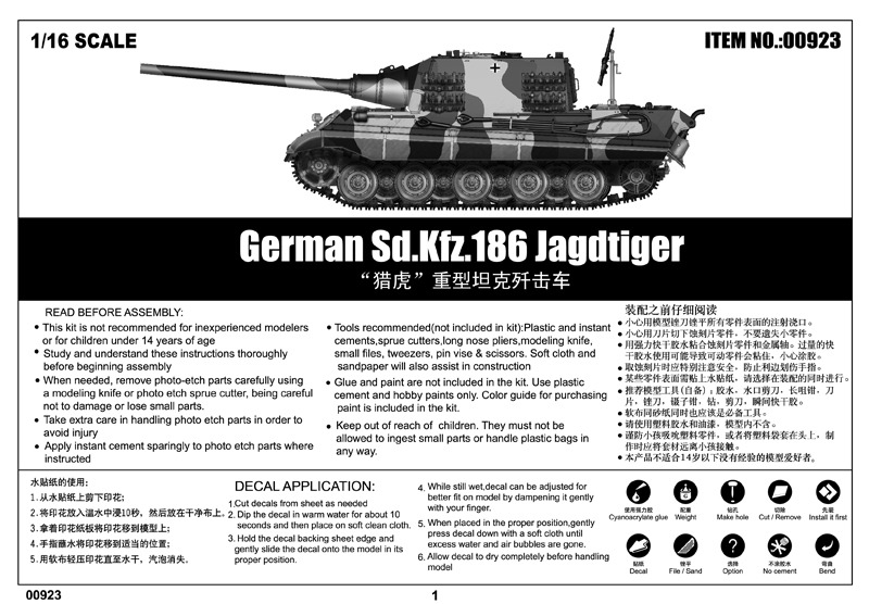 [[신제품]]German Sd.Kfz.186 Jagdtiger # 00923 [1/16th Trumpeter Made in China]