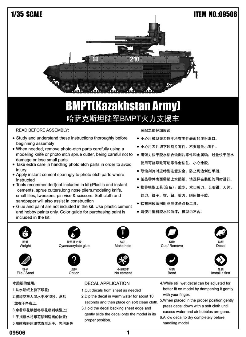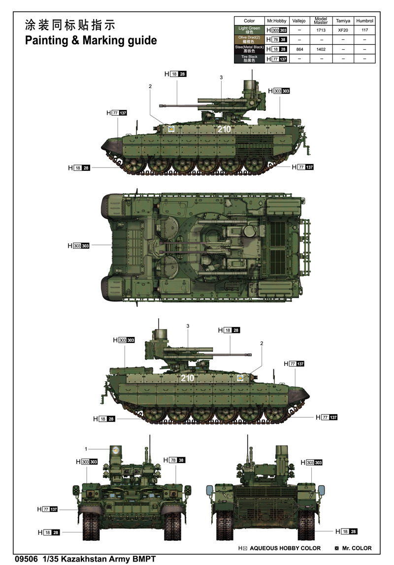 꾸준히 T-90 바리에이션 제품을 출시중인 트럼페터에서 드디어 T-90 차체를 이용한 시가전 전용 전차인 BMPT 제품을 출시합니다. 러시아와 더불어 BMPT 를 실전배치한 카자흐스탄 육군기체를 재현한 제품 입니다.