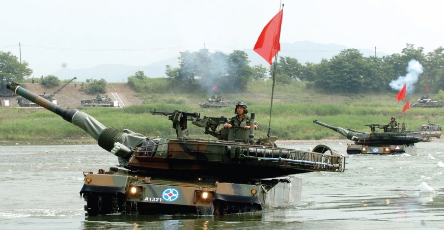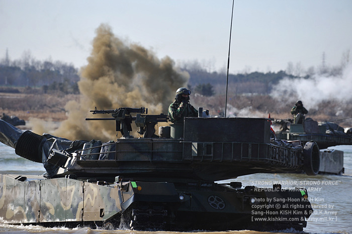 [K-1 전차의 다른 특징으로는 도하능력을 들수 있다. 별도의 도하킷을 장착하면 최대 4미터 까지 도하가 가능하다. 이는 하천이 많은 한국적 지형적 특성을 잘 반영한 대표적인 설계라 하겠다]