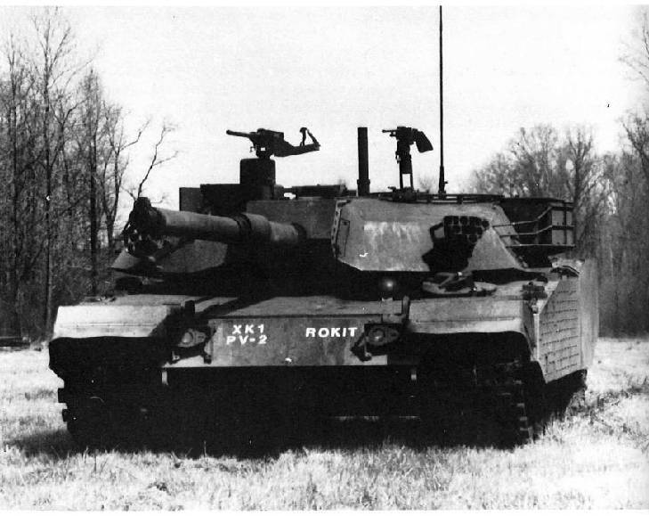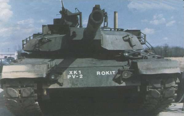 [ 개발당시의 XK-1 의 진귀한 사진..곳곳에 XM-1 (M-1 에이브람스 전차의 프로토타입) 의 흔적이 남아 있다. XK-1 의 경우 한국정부의 요청에 의해 최초 한국형 전차의 개념설계와 탐색개발을 담당했던 크라이슬러 디펜스사는 회사의 경영부진으로 제너럴 다이나믹스사에 매각되어 제너럴 다이나믹스 지상 사업부(GDLS)로 변경되는 고초를 겪었고 XK-1 전차에 대한 기술습득을 위해 현대정공의 기술팀과 국방과학연구소의 연구팀이 미국의 GDLS사에 파견되었다. 전체적으로는 XM-1 의 설계를 충실하게 반영한 전차로 뛰어난 성능은 이미 확정된것이나 마찬가지였다]