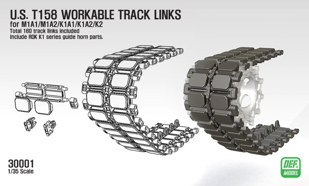 국내 개라지 업체인 def모델에서 출시하는 연결식 궤도 로 M1A2 및 K1 전차 씨리즈에 사용가능한 신형 T-158 궤도가 출시됩니다.