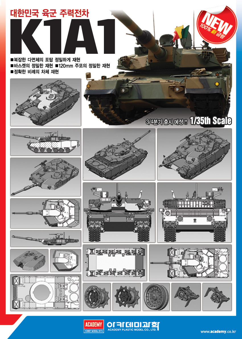 아카데미에서 11월 신제품이 쏟아집니다. 지난 월요일에 700 스케일 미조리호를 시작으로 어제 16일에는 22일 출시예정인 13419번 "1/35 대한민국 주력전차 K1A2" 제품을 한주 정도 빠르게 출시되었습니다.