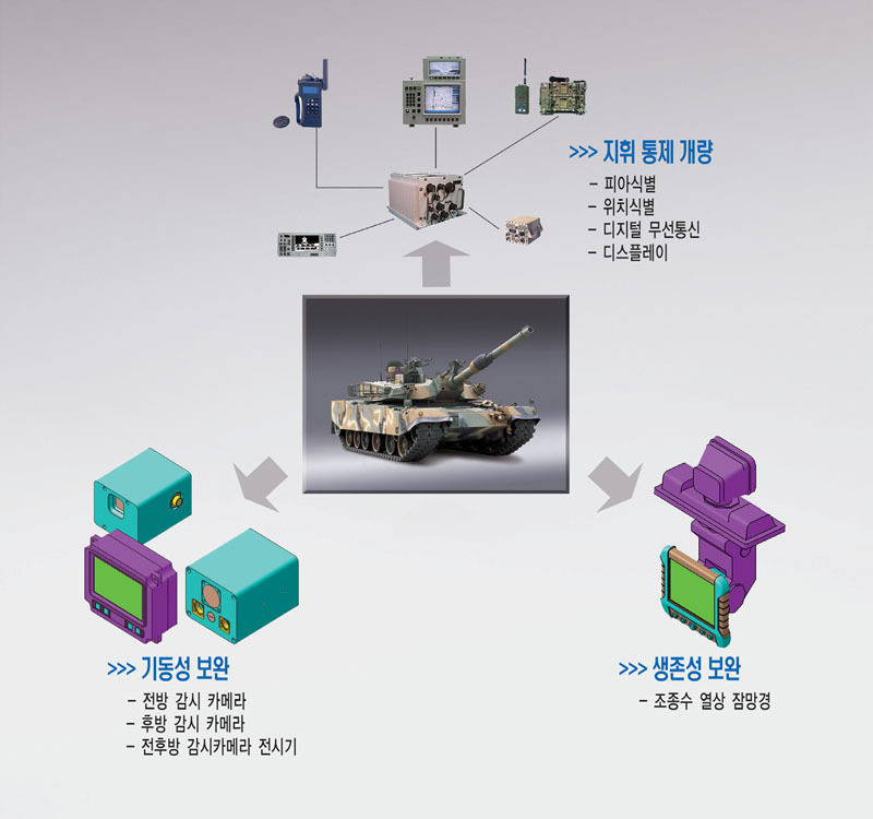 [K1 전차의 개발경험은 이어 K1전차의 개량형 모델인 K1A1 의 개발로 이어지며 이 때 얻어진 경험으로 3.5 세대급 전차로 불리우는 K-2 흑표전차의 개발기술을 획득하는데 성공하게 되었다]
