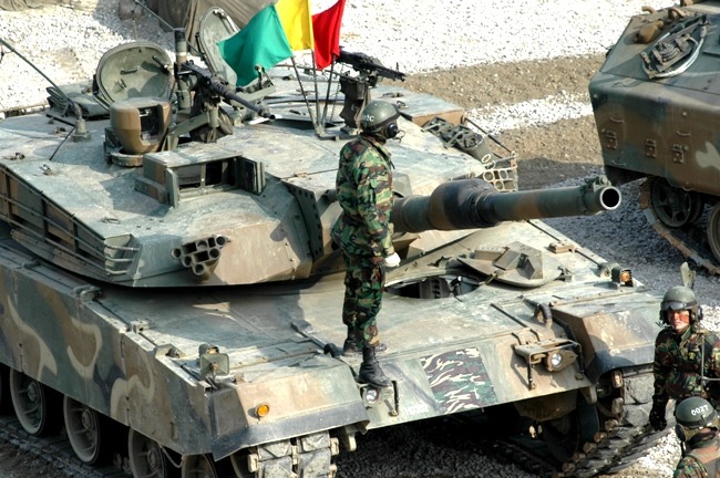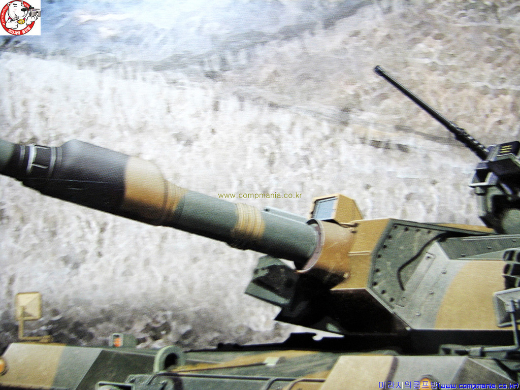 [주포 사격중인 K-1 의 모습.. K-1 전차가 105밀리 주포를 고집하게 된 이유로는 한반도의 경우 산악지형이 많아 1킬로 이내의 전차전이 많을것이라는 지적과 체구가 작은 동양인의 특성상 120밀리 포탄의 운용이 힘들것이라는 지적 등 복합적인 이유가 반영되었다. 사실 이정도 작은 전차에 당시 기술로 120밀리급의 주포를 장착하는게 어려운 일중 하나였을것이라는게 필자의 생각이다. 당시 신뢰성 있는 자동장전장치가 있는것도 아니고 대형의 전차를 만들기에는 위험성이 컸을것이다.]
