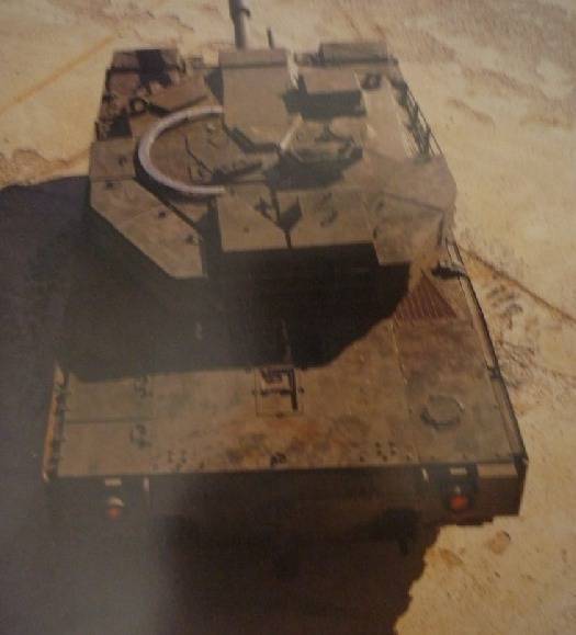 [ XK-1 전차의 프로토타입의 사진.. 후방 엔진테크의 경우 지금의 형태와 상당히 다른데 이는 초기 프로토타입의 경우 M-60 전차의 발전형인 수퍼 M-60 전차의 엔진으로 제안되었던 적이 있었던 AVDS-1790-9A 엔진을 XK-1전차에 탑재할것을 상정하여 설계되었는데 이렇게 한 이유는 육군이 운용중인 M-48 전차와의 군수지원상의 공통성을 갖기 위해서 채택한 것으로 보인다 하지만 1984년 중반 갑자기 미국은 한국에 대하여 이 엔진의 제3국에 대한 수출을 무조건 금지한다는 통보를 하면서 장래 수출을 염두해 두고 개발중인 K-1 전차의 수출에 방해가 안되도록 수출에 제약을 덜 받는 동급의 독일 MTU사의 MB 871 수냉식 디젤엔진으로 교체하면서 오늘날의 K-1전차의 엔진테크 외형으로 변경되었다]