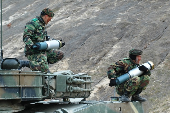 [120mm 포탄을 적재하는 전차병의 모습 대부분의 현용 전차는 좁은 전차구조로 인해 인력으로 탄을 보충하며 120밀리 포탄은 무게로 인해 한국인의 작은 체구로 다루기가 까다로운 편이다 K1A1에는 좁은 차체로 인해 총 32발의 포탄이 적재되며 이는 평균 45발 이상을 적재하는 다른 전차들에 비해 많이 부족한 편이다. ]