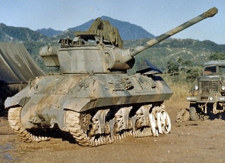 [한국전쟁 당시 북한이 장비한 T-34 들은 사진의 M46 패튼전차나 M26 퍼싱전차들이 상대해서 한국군이 장비한 M36 잭슨이 대전차 임무에 나설일은 없었다 하지만 보병의 지원용으로 한국군 최초의 기갑차량인 M36은 활약은 대단했다고 한다. 1953년 1월부터 정전 때까지 53전차중대 3소대장으로 M36 경전차를 몰고 전장을 누빈 김봉기(金鳳起·75·갑종24기)예비역 대령은 “보병을 지원하기 위해 우렁찬 굉음을 울리며 M36 경전차를 몰고 가서 90mm 주포를 사격하면 보병들의 사기가 오르는 것이 눈에 보일 정도였다.”고 회상했다. 사진은 한국전쟁 당시 사용된 M46 패튼전차의 모습]