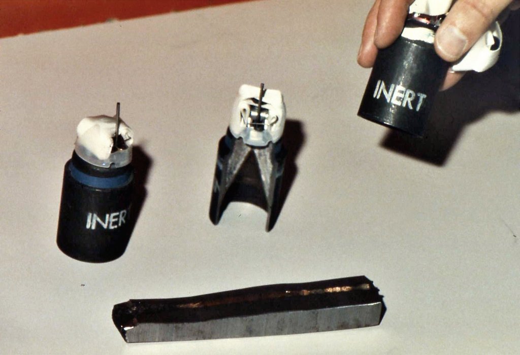 [M26 미사일 내부 자탄의 모습 냐부에 수천개의 강철볼이 들어 있으며 하늘에서 분리된후 낙하사늘 타고 천천히 낙하되면서 일정 높이에서 폭발 적의 차량과 병력을 공격하게 되어 있다]