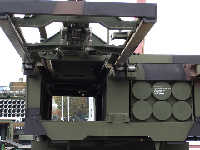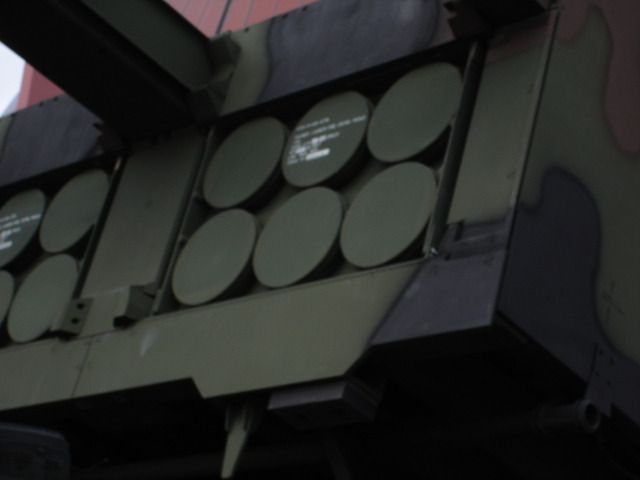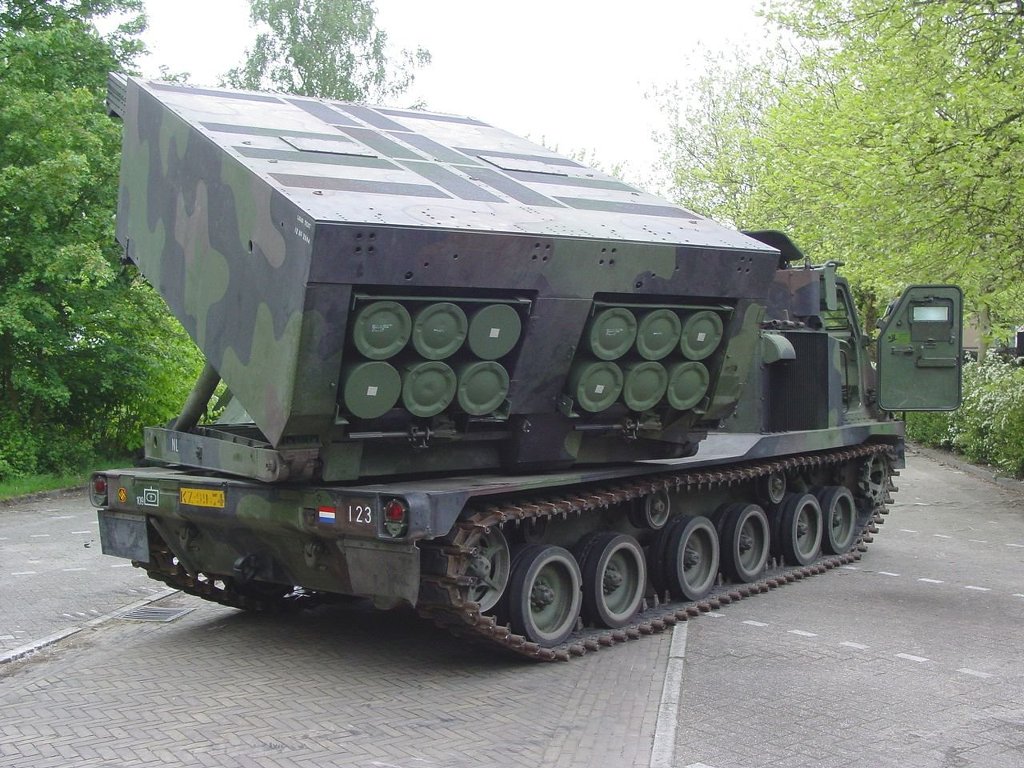 [MLRS 의 뒷모습 차체는 발사기에 불과하므로 구조는 익히 간단하다. MLRS 의 진정한 포인트는 바로 발사로켓에 있는것으로 발사기에는 이 로켁을 정확하게 날릴수 있는 데이타를 주입하고 로켓을 발사지점으로 안전하게 이동시키는 역활을 한다]