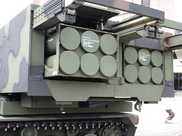 [M270 MLRS 는 무겁기 때문에 수송기로 빠른 적지파견이 불가능 하다 이런 단점을 해결하기 위해 발사기의 한쪽만 고기동 트럭이 장착하여 공중수송이 가능하게 만든 또다른 MLRS 시스템이 바로 M142 HIMARS (High Mobility Artillery Rocket System) 이며 C-130 허쿨리스 수송기를 이용 어디든 수송이 가능하다 발사기는 M270과 같지만 중량문제로 한개의 발사기만 장착 최대 6발의 M26 로켓 발사가 가능하다]