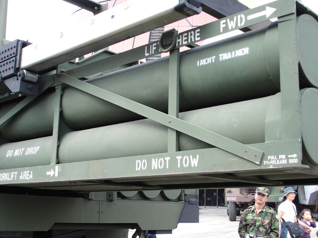 [ M39 에이테킴스라 불리는 ATACMS(Army TACtical Missile System) 탄도탄은 MLRS의 또 다른 무기로 상대적으로 사거리가 길고 (300킬로 이상) 무게가 있어 지대고 미사일처럼 사용이 가능하다]