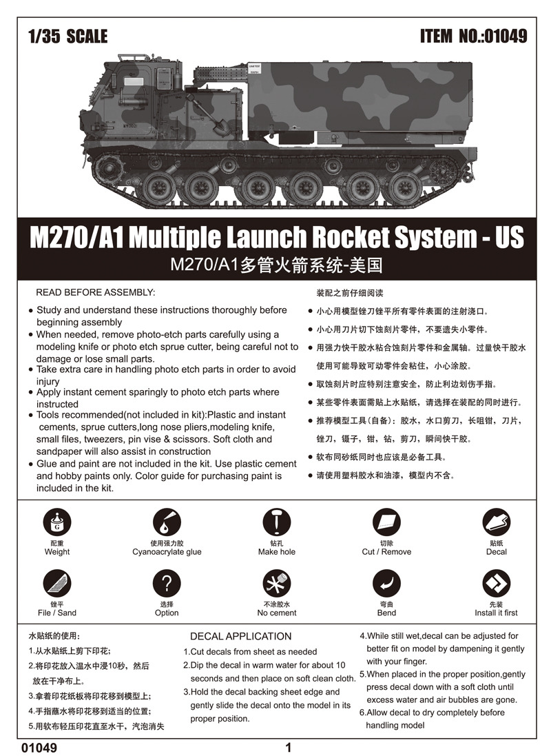 [[신제품]]M270/A1 Multiple Launch Rocket System # US 01049 [1/35 TRUMPETER MADE IN CHINA]