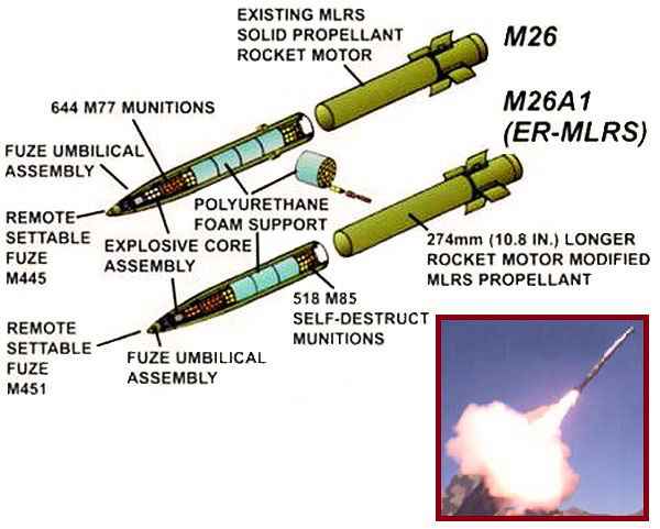 [일반적으로 사용되는 탄이 M26으로 불리는 로켓으로 274mm 직경의 길이 약 2미터 정도의 로켓으로 내부에 300~400개의 자탄을 가지고 있다. M26은 6개씩 한개의 컨테이너로 구성되어 한꺼번에 탑재된다. 총 12말의 M26을 불과 수분만에 발사가능하며 축구장 3~4개 넓이를 초토화시킬수 있는 무서운 무기이다.]