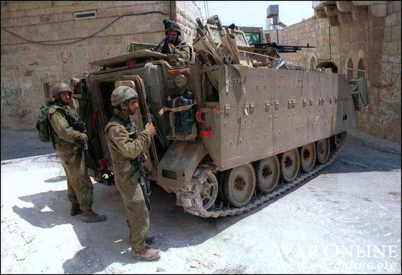 Zelda - Upgraded Bardehlas (M113) with Toga armor suite - perforated steel plates mounted on an external frame around the front and sides of the vehicle. A special command version with additional radio equipment and auxiliary power unit also exists. The command version is usually referred to as Nagmash pikud (command APC).