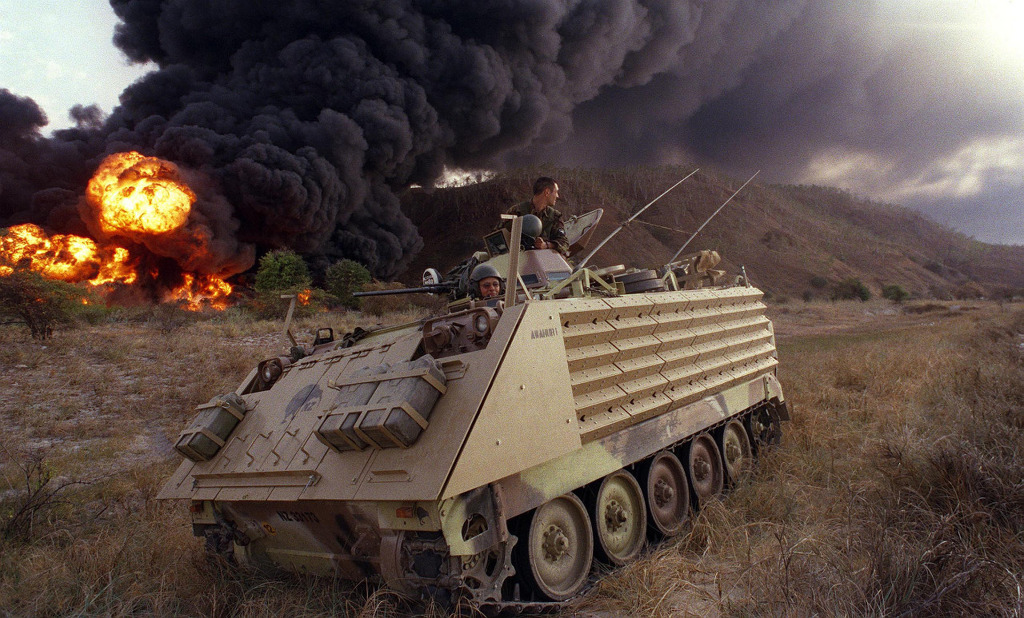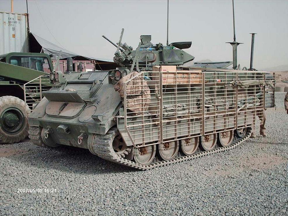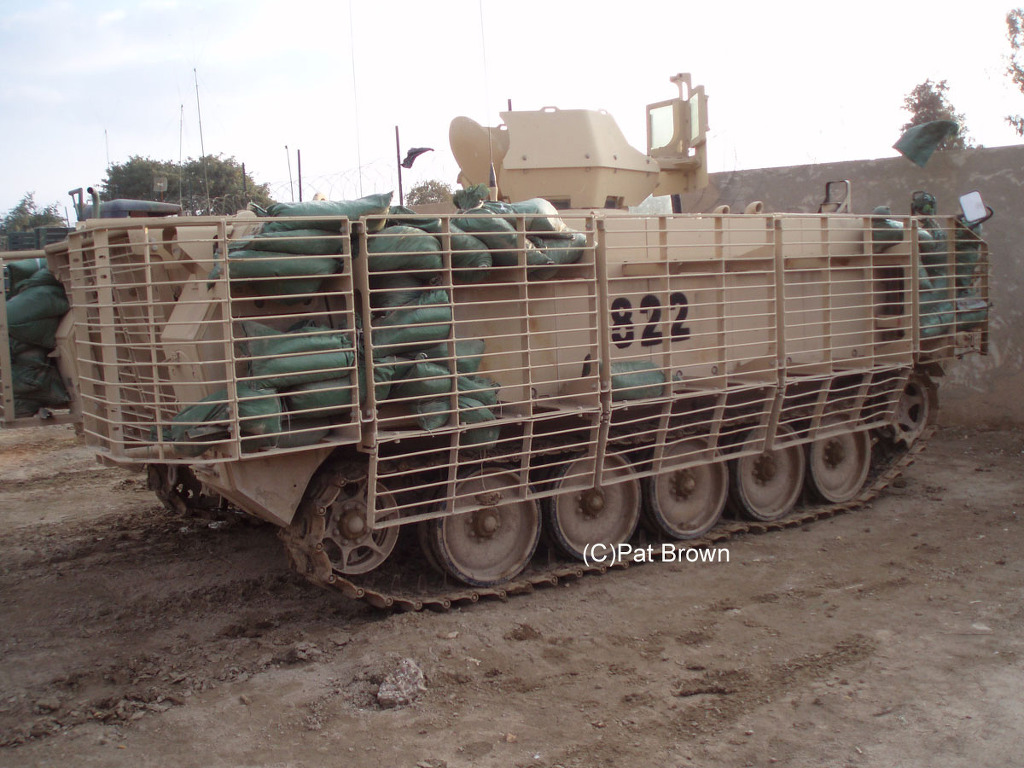 [최근 RPG 같은 대전차 미사일의 공격에 대비하기 위해 창살형태의 장갑을 추가하여 운용중인 M113A3 장갑차 비록 장갑이 약한면은 있지만 저렴하고 가벼워 급히 공수가 가능하여 여전이 많은수의 M113 이 사용중이다.]