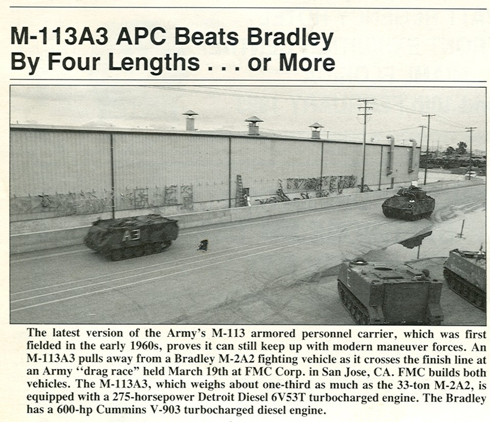 드래그 레이스에서 M2A2 브래들리