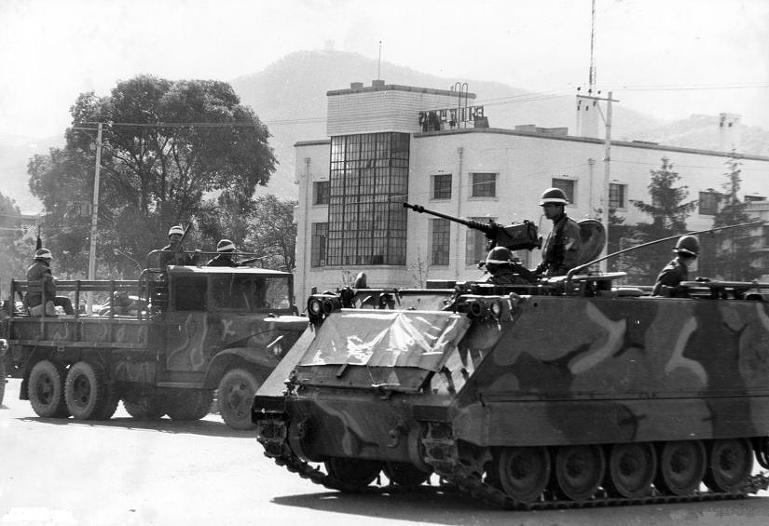 1971년 10월 15일 고려대학교 학생들의 시위 시도를 선제 차단하기 위해 투입되어 정문을 막은 옛 수도경비사령부