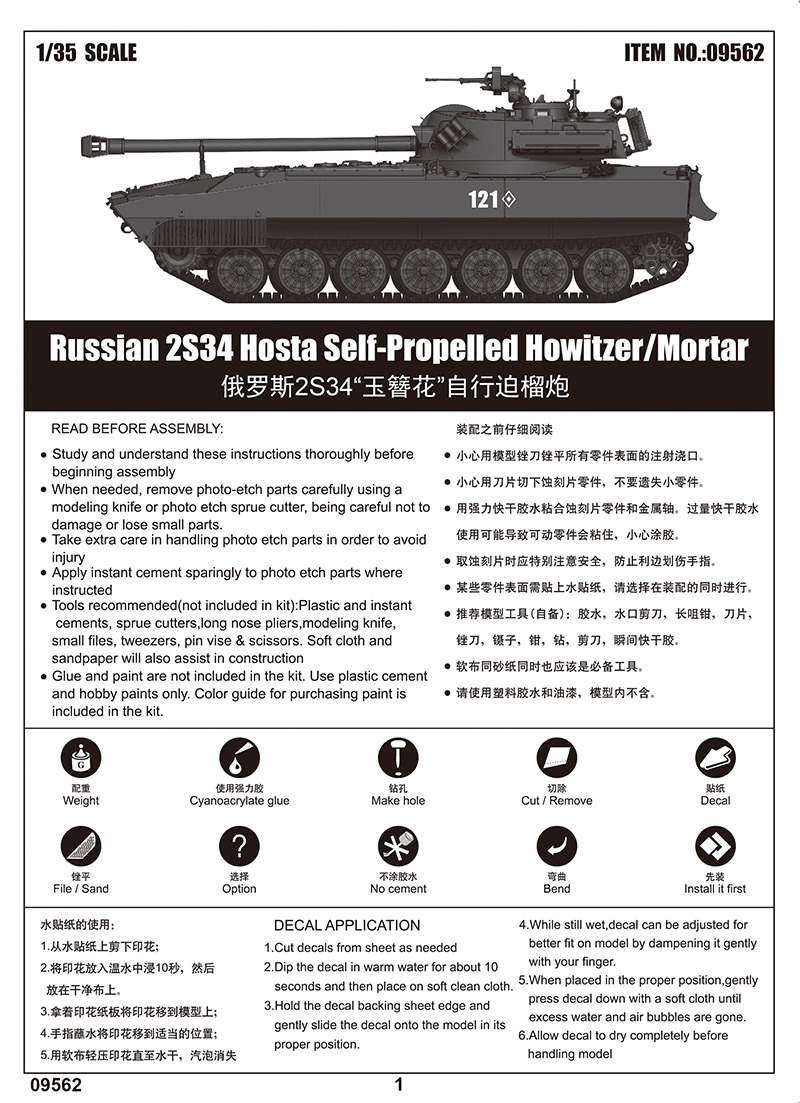 [[신제품]]Russian 2S34 Hosta Self-Propelled Howitzer/Mortar #09562 [1/35th Trumpeter Made in China]