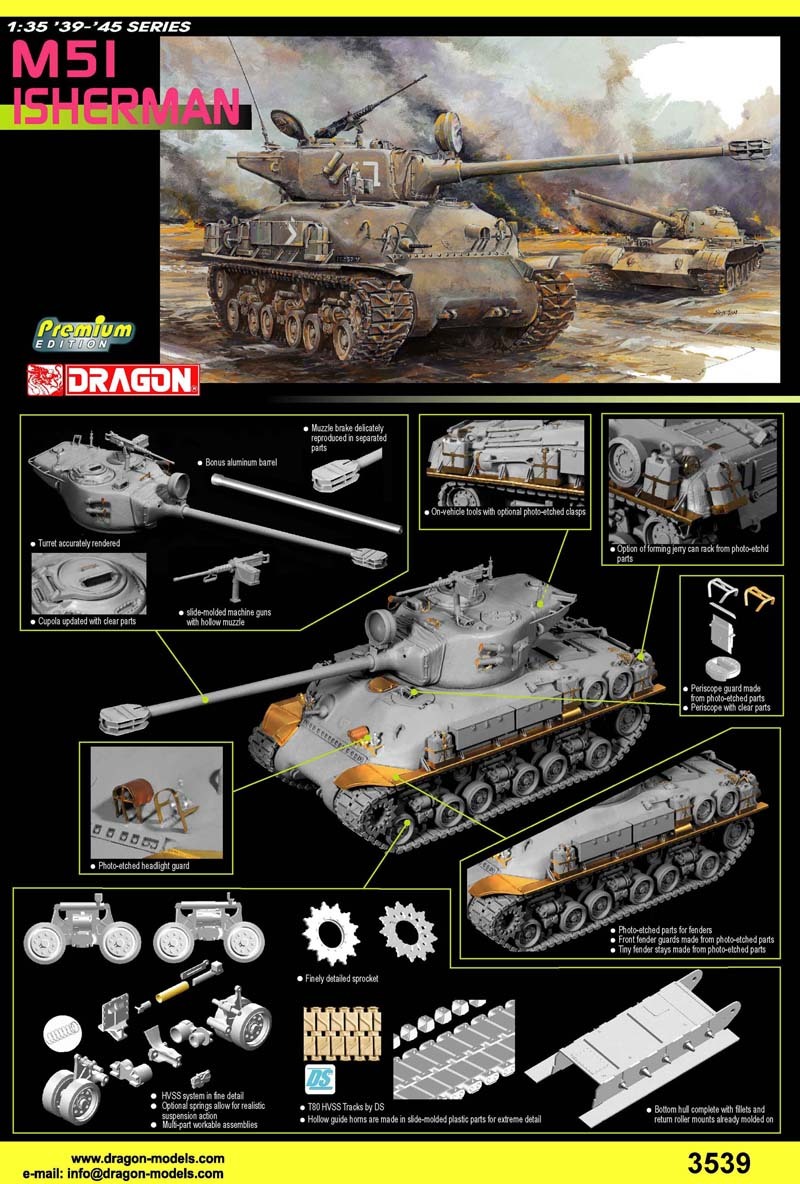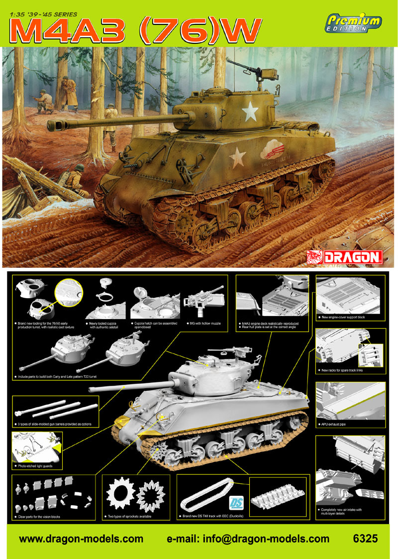 드래곤 제품은 인기에 비해 그동안 값비싼 레진제품 외에 모형화 되지 않았던 파이어플라이의 인?션화와 그리고 기본형이 되는 M4A4 씨리즈의 출시외 한국전쟁 참가차량 사양으로 만들수 있는 M4A3E8 이지에잇 씨리즈를 출시한데 만족해야했습니다.