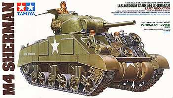 [M4 초기형(U.S. M4 Sherman - Early Production # 35190 )을 바로 출시 드래곤의 셔먼인기에 찬물을 끼엊기 시작하였으니 만들기도 쉽고 프로포션이나 디테일도 좋은 더구나 구형 부품이 고스란히 들어 있어 다른 셔먼개조에도 좋은 이 제품이 인기가 없을리 만무했고 드래곤의 셔먼붐은 타미야의 맞불작전에 빛을 다하기도 전에 사그러졌던 것이다]
