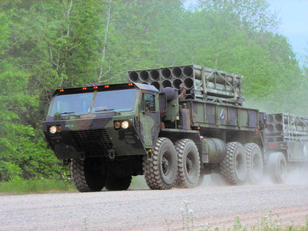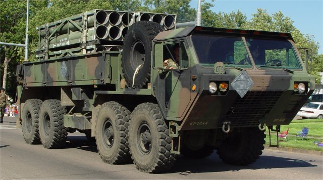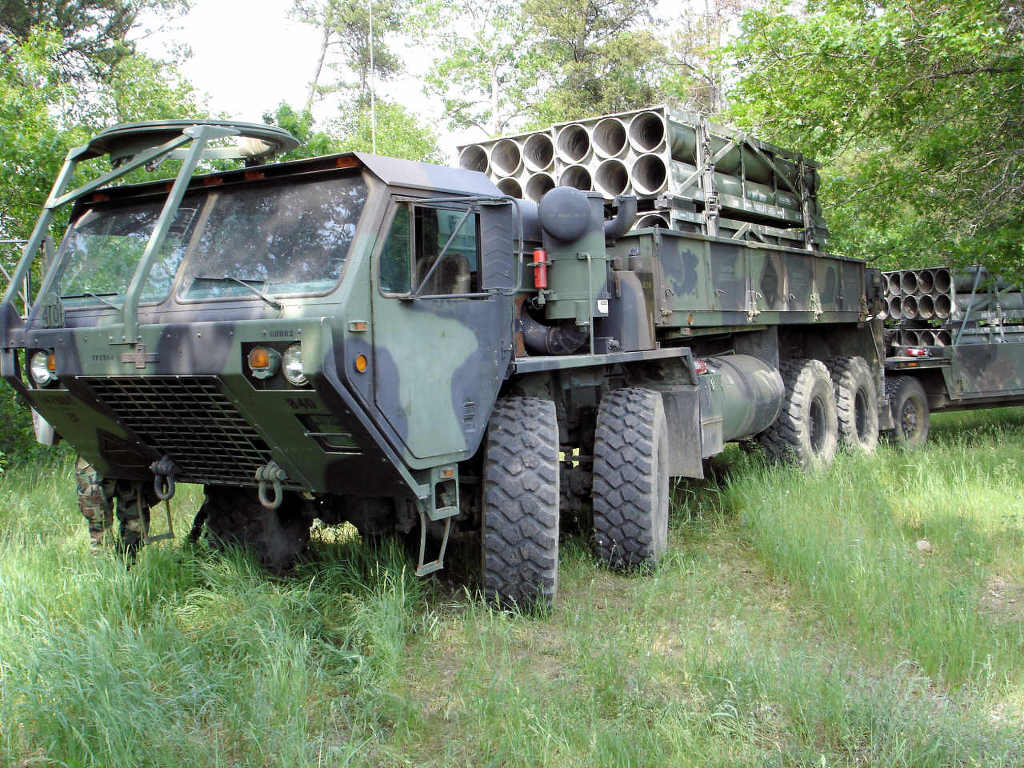 통상적으로 1대의 MLRS 에는 2대의 M985 전술 트럭이 함께 행동하고 각각의 M-985 에는 6연발짜리 로켓포드가 8개가 적재됩니다.