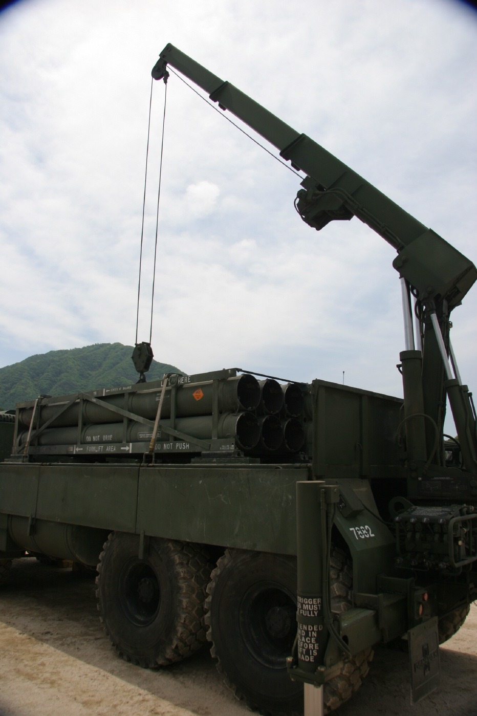 1문의 MLRS 에는 기본적으로 12발의 로켓탄을 발사할수 있으며 2대의 M985트럭에는 6발짜리 8개가 탑재되어 총 108발의 227밀리 로켓탄을 동시 운영할 수 있습니다.