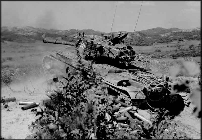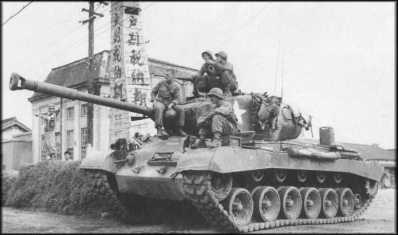 [평양에 진입중인 미군과 이를 지원하는 M46 패튼전차의 모습 1951년 쯤에는 북한군의 모든 전차들이 소멸해버린 지라 대부분의 연합군의 전차들은 보병과 진격을 같이 하며 지원전차로 이용되었다]
