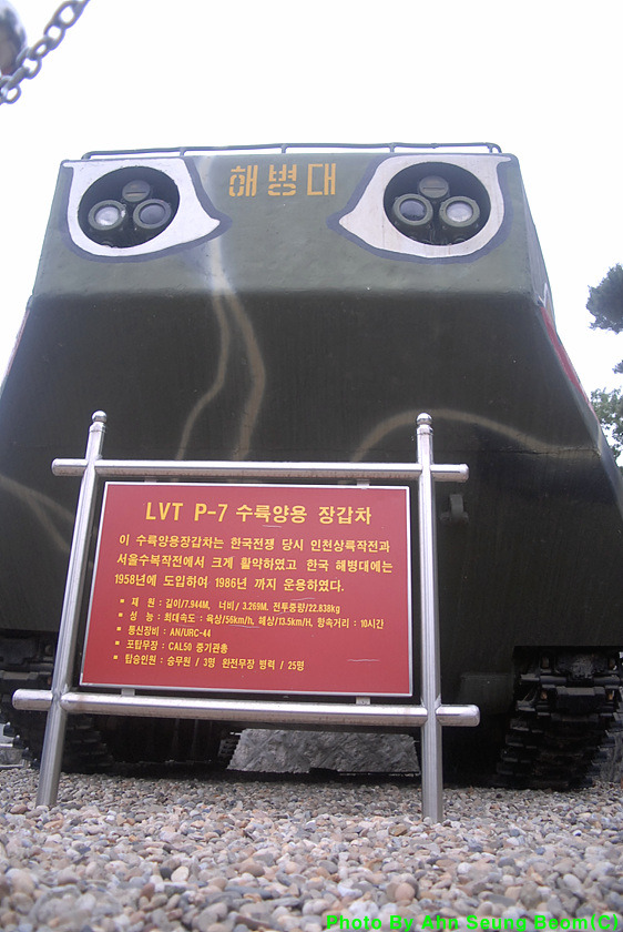 [이거 언넘이 쓴거야..? 개념없이 쓴 안내 표지판 LVTP-7이 나온게 언젠데 6.25때 사용한 기체라고 구라를... 이거 수정안되나..? 아마 LVT-3/4 하고 헷갈린듯..양호형님 전직 해병대 대위출신으로 이거좀 수정 안되는지? 쪽팔리네요.. 명세기 30여간을 해병대 부대 장비로 해병들과 생사고락을 함께 했을텐데.. 이런...망신을 주다니..]