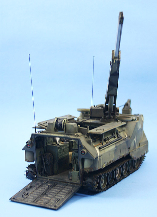 [해병대의 필수장비인 AAVR-7A1 Assault Amphibian Vehicle Recovery를 완벽하게 재현한 제품으로 크레인과 공구들의 정교한 재현이 일품인 제품이다]