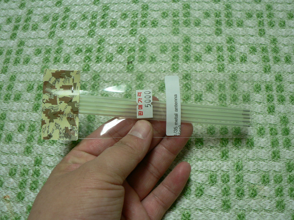 작은 부품이긴 하지만 안테나는 전차나 장갑차등 밀리터리 아이템을 만들때 달아주면 이외로 뽀대가 나는 부품중 하나 입니다. 안테나를 재현하는데는 물론 고전적인 방법인 런너를 촛불에 늘려 만드는 방법도 있지만 역시 금속제 안테나의 샤프한 느낌을 내기에는 다소 부족한게 사실입니다.