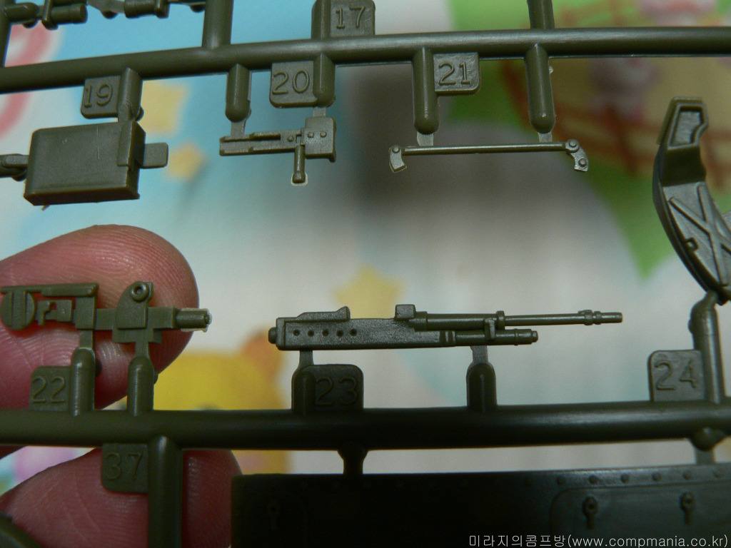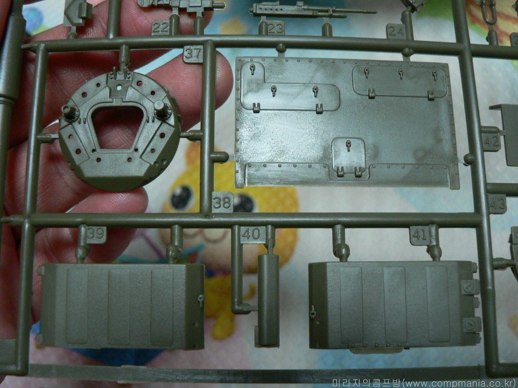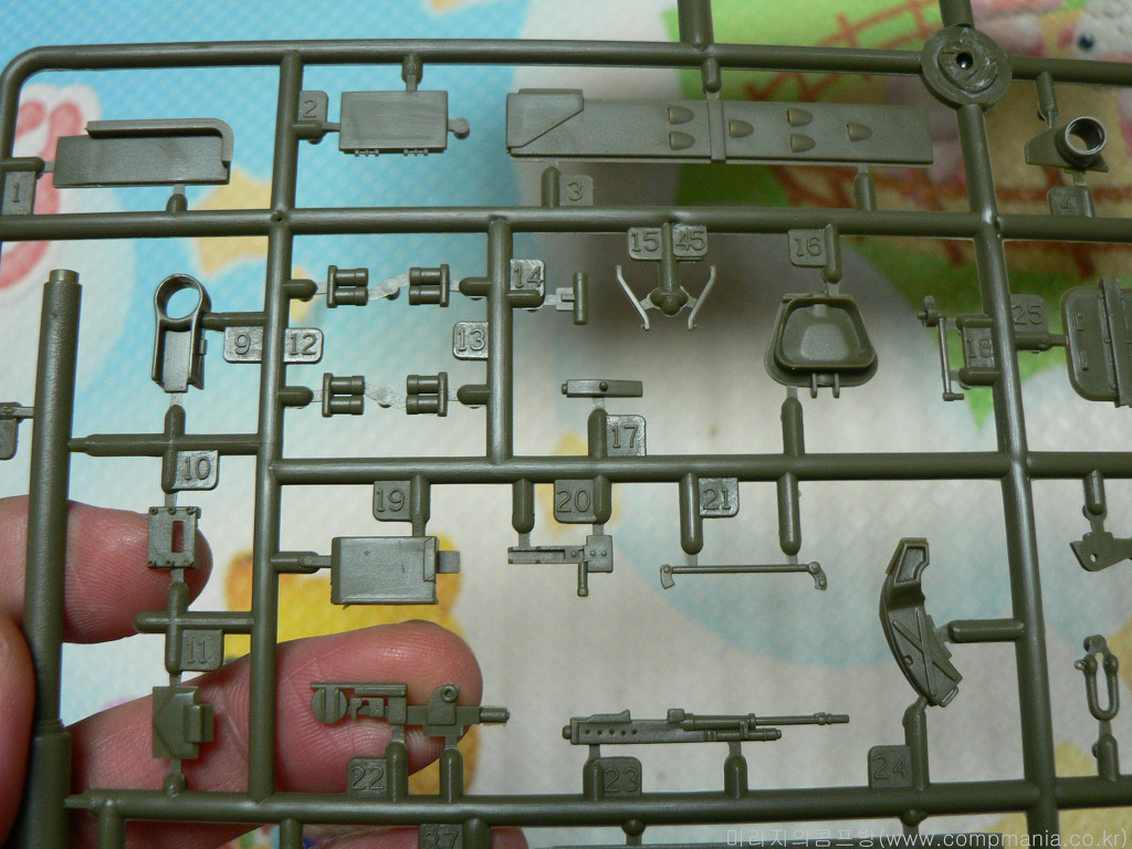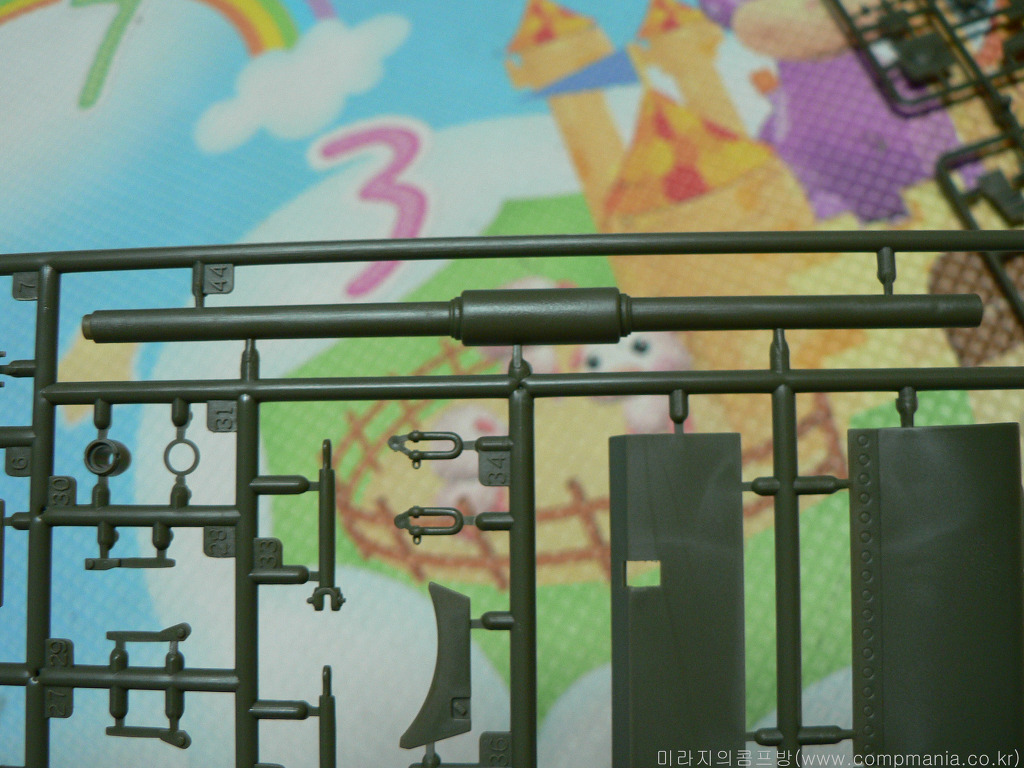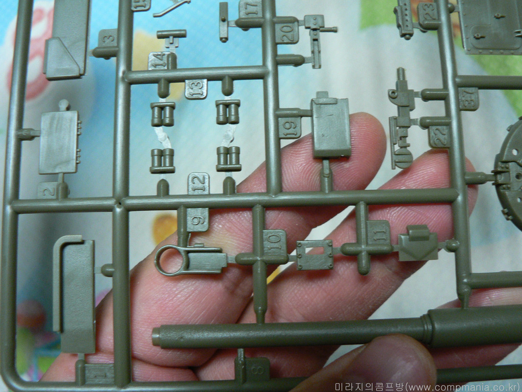 [주포인 보포스 L/62(영국의 L7 105 mm 라이센스제품) 는 좌우분할되어 있습니다. 조립후 끊임없이 사포질을 해야하는 부품중 하나]