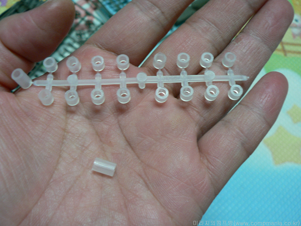 잔부품의 사출상태는 역시 상태가 그리 좋치는 않습니다. 케이트가 두꺼워 잘라내기도 힘들지만 잘라낸후 어김없이 다듬기를 해주어야 할정도로 가스래기도 먾고 가끔 미사출 부품도 보입니다.