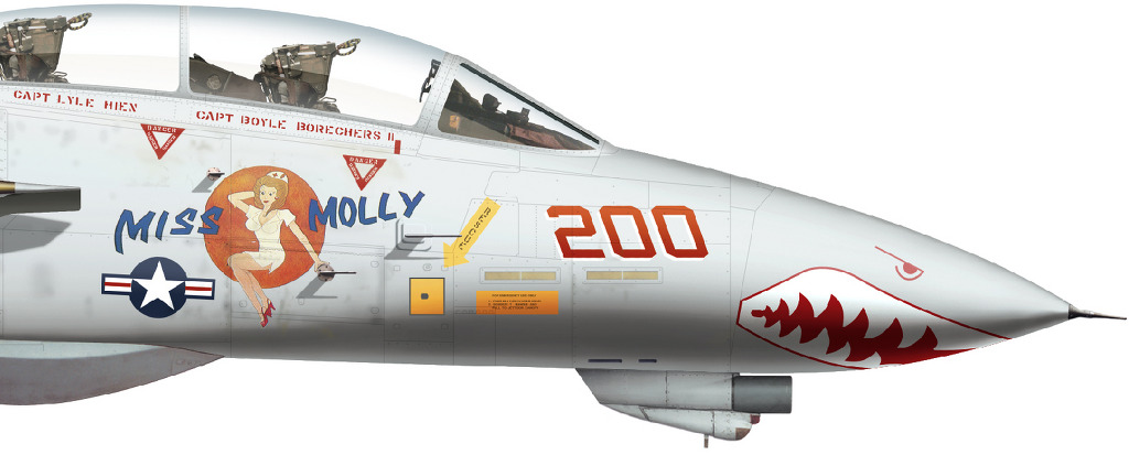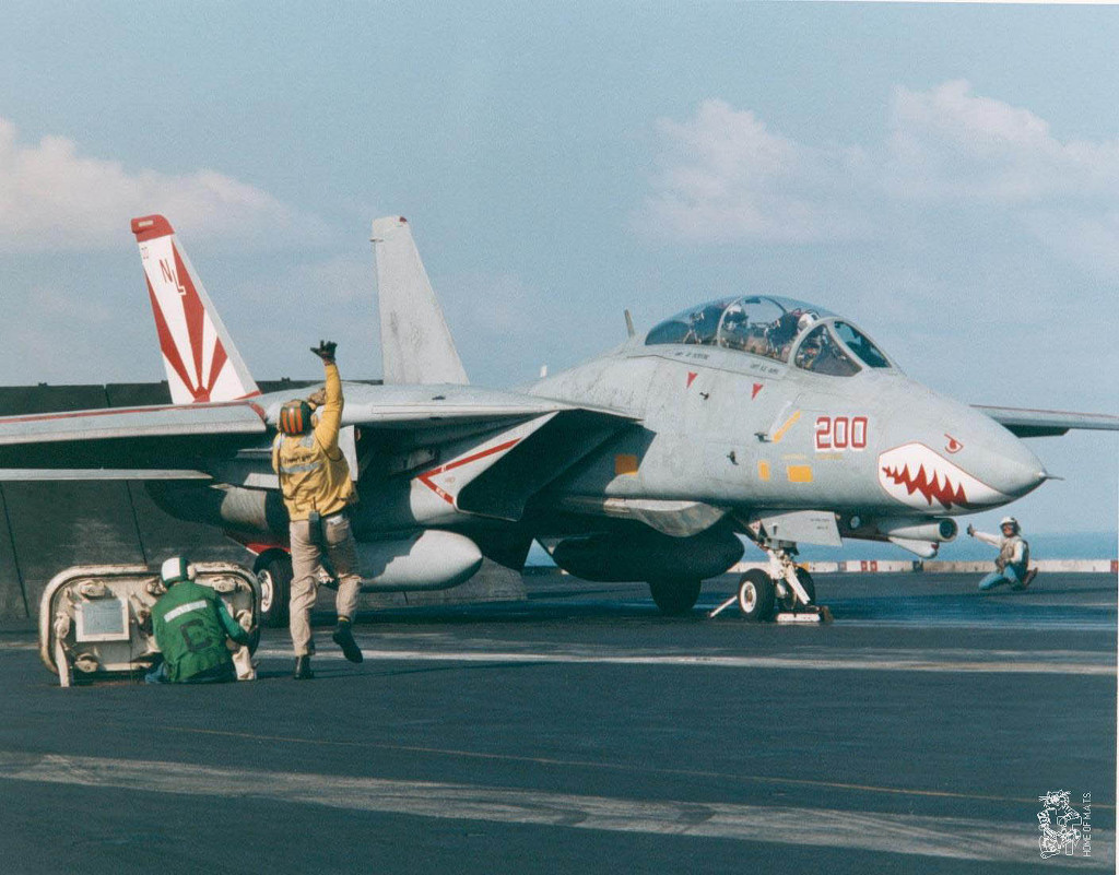 [VF-84 소속의 F-14A 전투기 와 헬멧 노란색은 VF-84 의 부대색이기도했다 하이비지 칼러가 유행했던 80년대 초반에는 헬멧에도 이런 원색을 넣기도 했다 ]