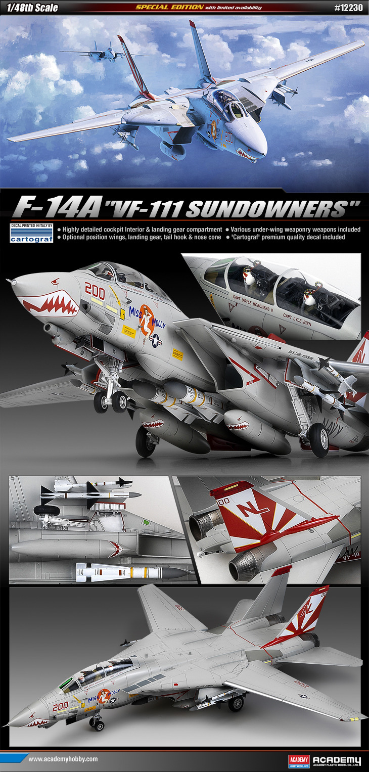 아카데미의 또 하나의 에어로 신제품인 #12230번 F-14A VF-111 'SUNDOWNERS' 가 공개되었습니다.