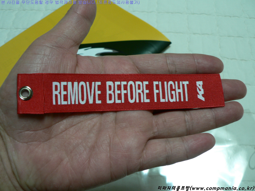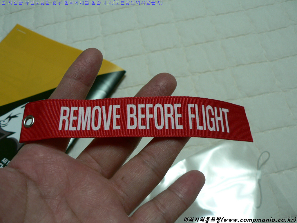 [서비스로 들어있는 'Remove Before Flight ' 핸드폰줄... 강렬한 붉은색이 잘 나왔습니다.]