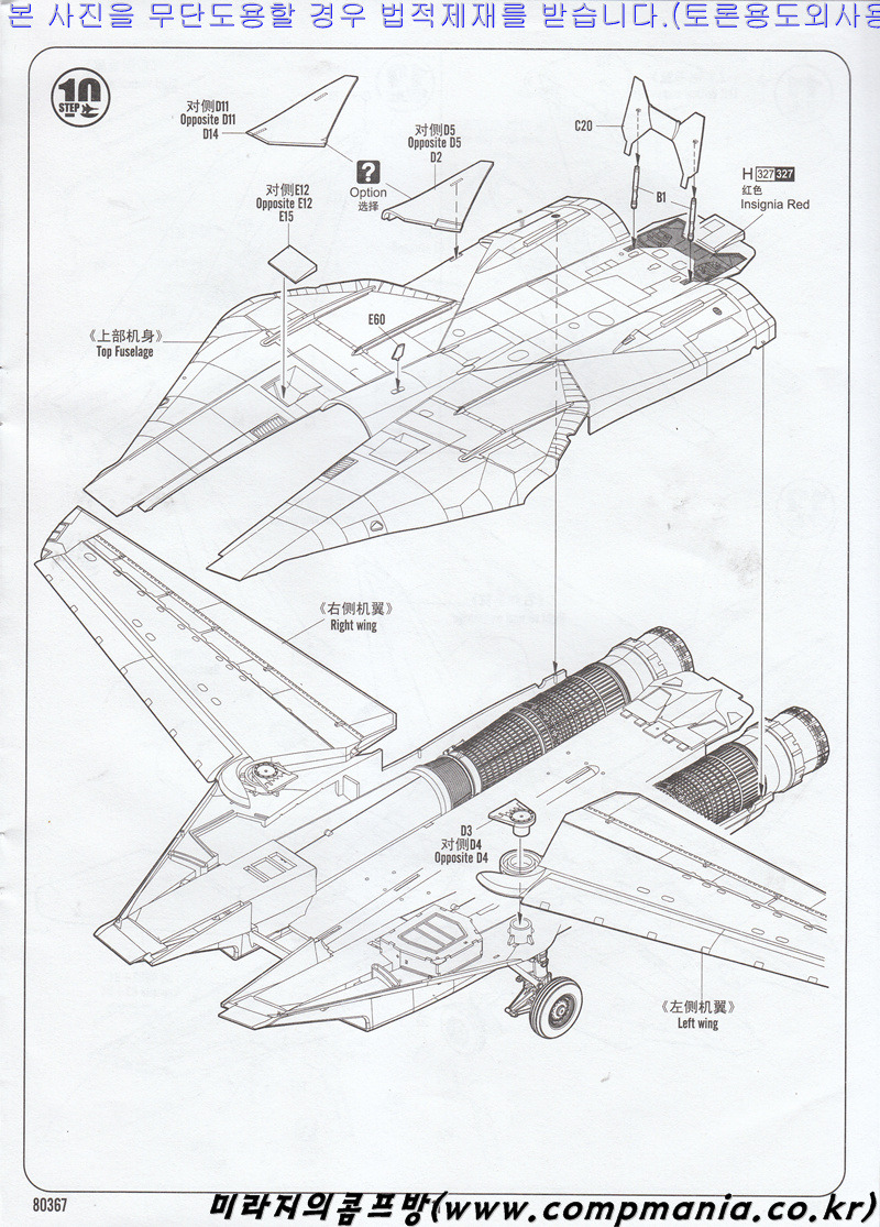 [수평미익도 도색후 쉽게 끼울수 있게 되어 있습니다. 단 하세가와나 타미야 제품처럼 포리캡을 이용한 구조는 아니라 좀 아쉬움이..]