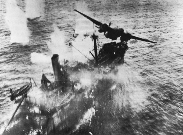 물수제비 뜨기 폭격(skip bombing)은 미 제5공군 소속의 조지 케니(George Kenney) 중장이 도입한 새로운 폭격전법으로(도버 해엽을 도약폭탄으로 터뜨린 바니스 월리스가 최초) 고고도에서의 평폭격으로는 명중률이 1%도 채 나지 않았던 것을, 물수제비 뜨듯, 폭탄을 수면에 튕겨 공격하는 전법을 창안해냈다.[7]