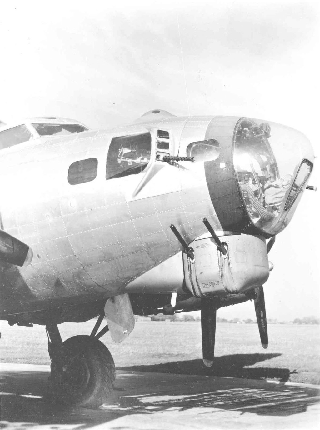 기수의 측면사수의 사격 시야를 확보하기 위해서 유리를 좀더 늘렸고, 후기형에 이르러서는 바깥으로 튀어나온 형태의 "Cheek"형 총좌로 바뀌었다. 또한 마찬가지로 후기형에서 기수를 보호하기 위해 기수 아래에 "벤딕스" 총좌가 설치되었고, 이것은 B-17G형에도 이어진다.