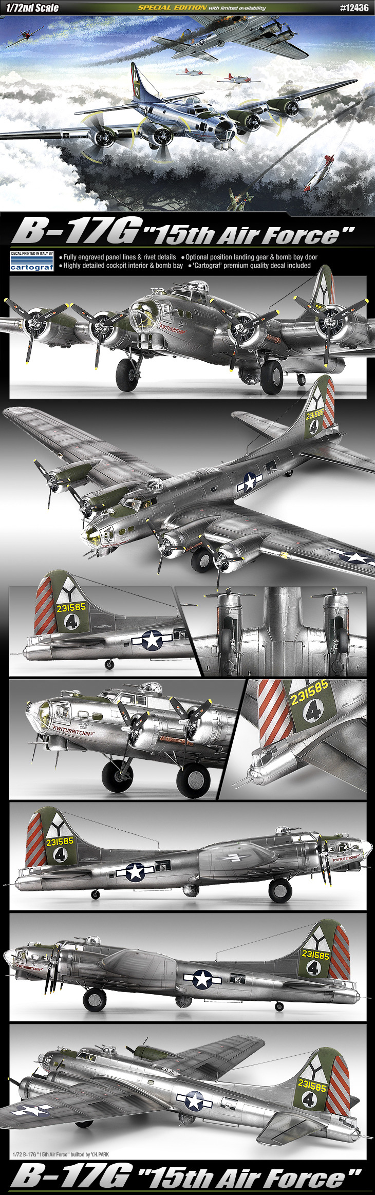 아카데미의 3월 신제품들이 속속 발표되고 있습니다. 이중 곧 출시예정인 #12436번 B-17G '15th Air Force' 가 공개되었습니다.